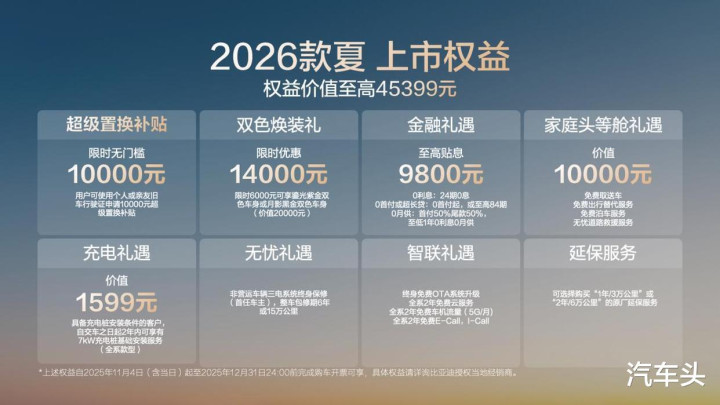 2025年11月4日,2026款夏正式上市,此次共推出4款车型,限时超级置换价19.68—25.98万元。仅需中级SUV的价格,就可享有超越30万级的豪华配置。